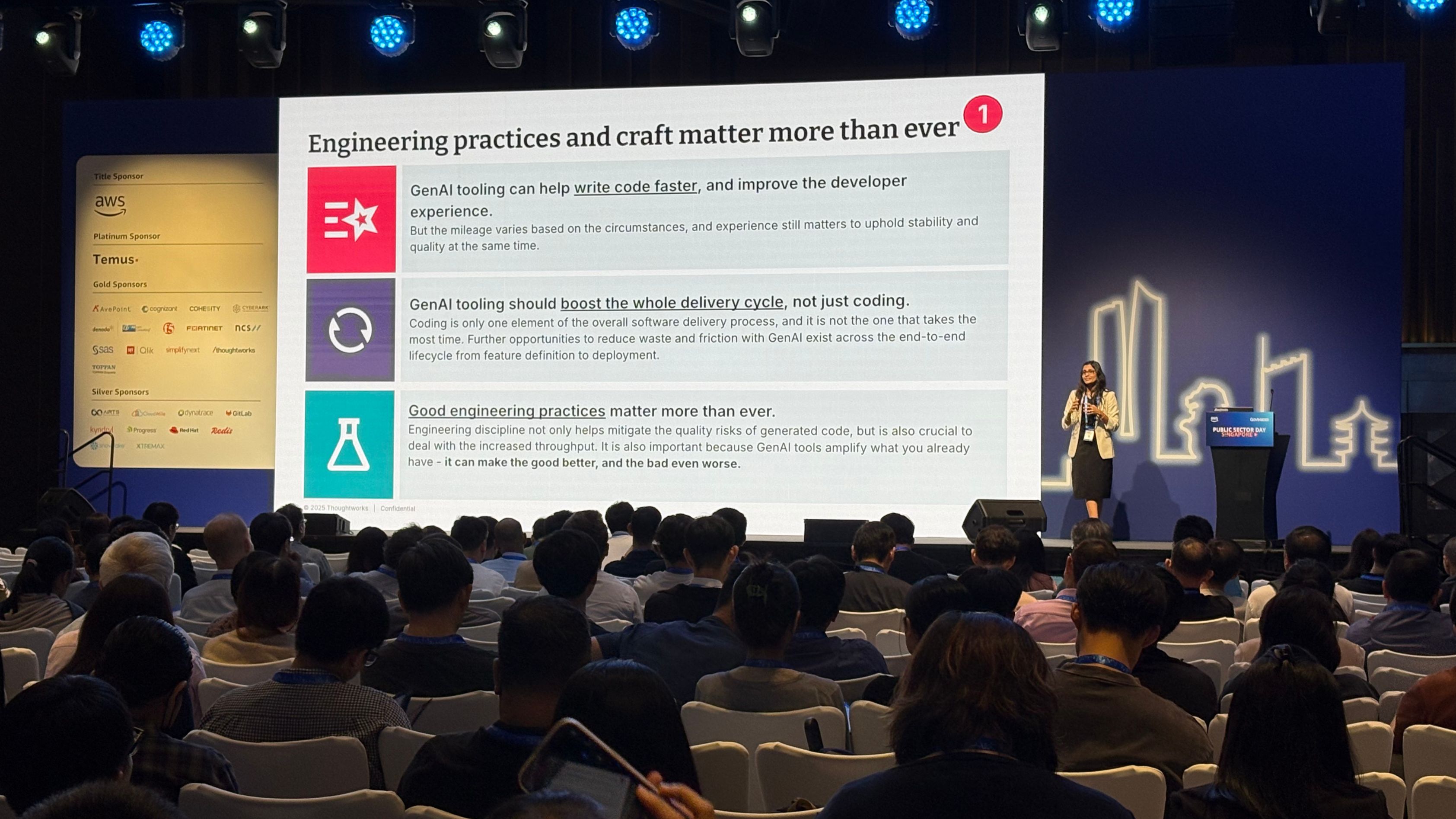 She was speaking about AI-First Software Delivery: Superpowers, adoption challenges, and the path to Software 3.0 at the AWS Public Sector Day in Singapore.