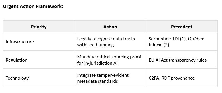 Countries need mechanisms enabling collective governance of cultural training data, treating it as public infrastructure requiring stewardship, not private property awaiting extraction.