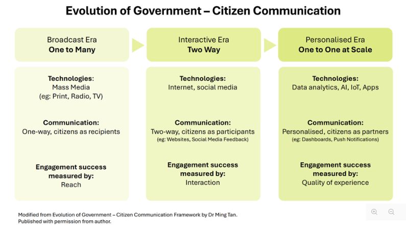 With the advent of big data, Internet of things (IoT), analytics, mobile apps and artificial intelligence (AI), the two-way relationship is no longer enough. Citizen engagement can now be dynamic, automated, predictive and co-created. Image: Canva.