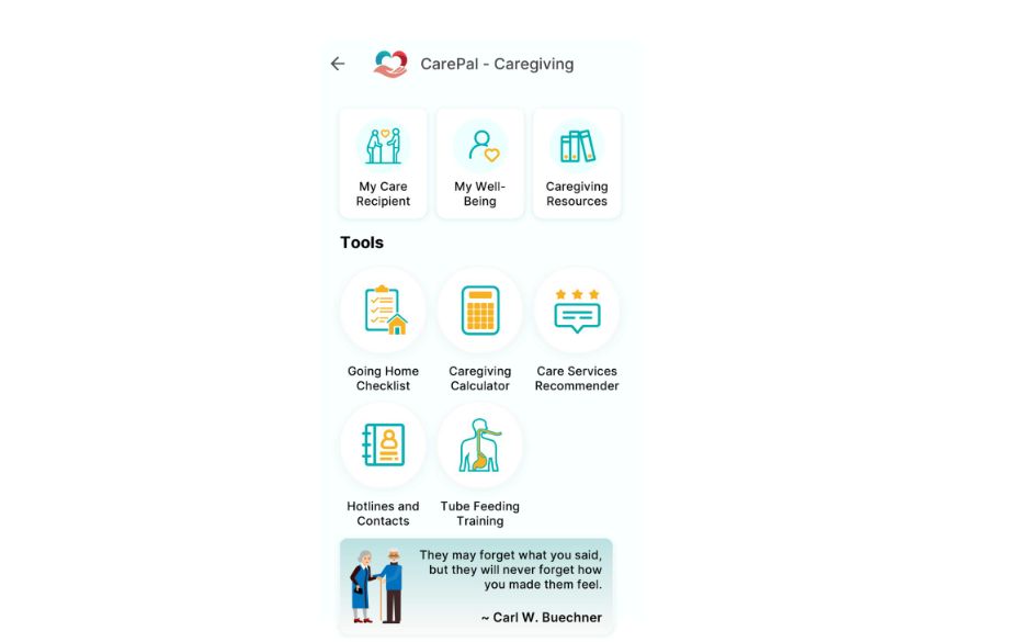 CarePal streamlines the process of managing a loved one’s care by centralising access to resources through a contact directory and a care service recommender, as well as critical tools like a caregiving calculator, discharge checklist, and a wellbeing assessment.