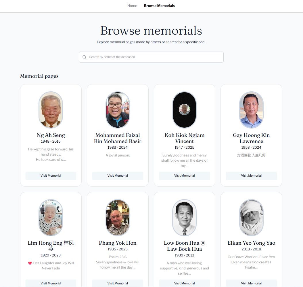 AfterLifeSG is a digital platform that allows users to create online memorials for their deceased loved ones.