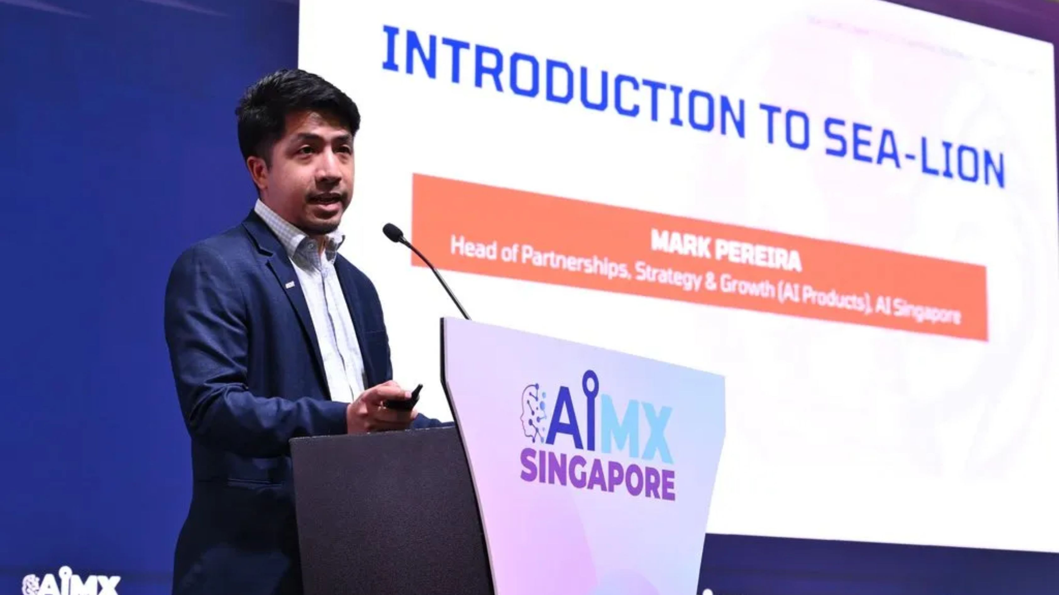 AI Singapore's Mark Pereira presenting about SEA-LION and its progress over the past few years at the inaugural SEA-LION Summit: Powering Southeast Asia’s AI Future at AIMX Singapore last year. Image: sea-lion.ai